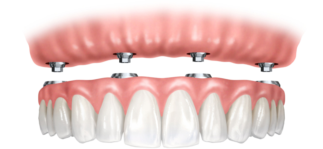 Современная методика протезирования, исключающая необходимость обточки здоровых зубов. Так как имплантат является полноценной заменой здорового зуба, он ни в чем не уступает ему, а даже превосходит по устойчивости и надежности, что обеспечивает лучшую фиксацию протеза в полости рта. При необходимости в челюсть вживляется несколько имплантатов (обычно достаточно 4–6), на которые устанавливается протез (съемный или несъемный). При этом имплантат выдерживает нагрузку в полтора раза больше, чем выдержал бы настоящий зуб.